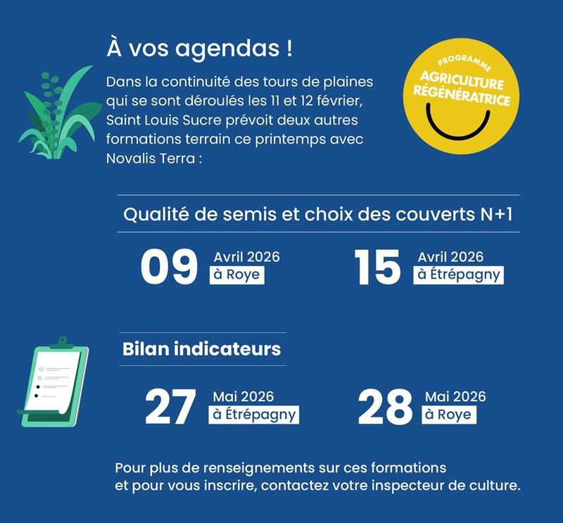 Depuis novembre 2025, un programme d’implantation de haies intègre le dispositif Agriculture Régénératrice. Déjà 4 km ont été plantés sur 7 exploitations, dont 3 sur le secteur de Roye. L’objectif est d’atteindre 100 km d’ici à 2030. Le financement est assuré par Saint Louis Sucre, dans le cadre de son volet « responsabilité sociale et environnementale (RSE) ». Pour les planteurs, l’intérêt est environnemental (biodiversité, lutte contre l’érosion, le ruissellement …) et sans charge financière supplémentaire.