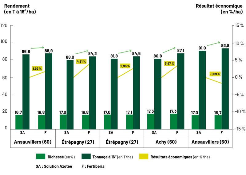 Cette situation s’explique en grande partie par la dynamique de libération de l’azote. Formulé avec des inhibiteurs de nitrification, l’engrais Fertiberia limite également au champ les émissions de protoxyde d’azote. Mais, en contrepartie, il diffuse l’azote plus progressivement. En 2025, la minéralisation du sol s’est révélée faible en début de cycle. Par conséquent, la libération tardive a pénalisé l’alimentation des betteraves au moment où leurs besoins sont les plus élevés. Résultat : un déficit précoce qui se traduit par une perte de rendement.